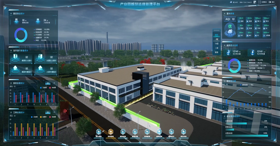 Through digital twin, intelligent algorithms, big data, Internet of Things and other technical means, it integrates park video monitoring, entrance and exit control, intelligent application, fire management, global mechanical and electrical equipment monitoring and other system functions in one, so as to achieve “intelligent perception and intelligent control” of the enterprise park all-round digital twin three-dimensional visual integration control.