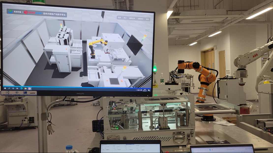 Digital twin industry 4.0 intelligent training demonstration system production line integrated “generalized FCT test platform + collaborative robot + loading and unloading mechanism”, to achieve the PCBA single board of different sizes and specifications for the increase of the FCT test point fully automated testing, test data information sharing and management, automatic loading and unloading and identification of good / bad products and other production needs, and through the replacement of different PCBA corresponding fixtures and fittings, editing platform software configuration and loading mechanism to transfer the size of the test report output. It also realizes the rapid switching of automatic test requirements for different PCBAs in the production line and outputs test reports by replacing the corresponding fixtures and jigs of different PCBAs, editing the software configuration of the platform and transferring the dimensions of the loading and unloading mechanism.